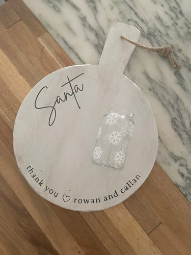 Personalized Santa Cookie and Milk wood platter, Christmas 2023