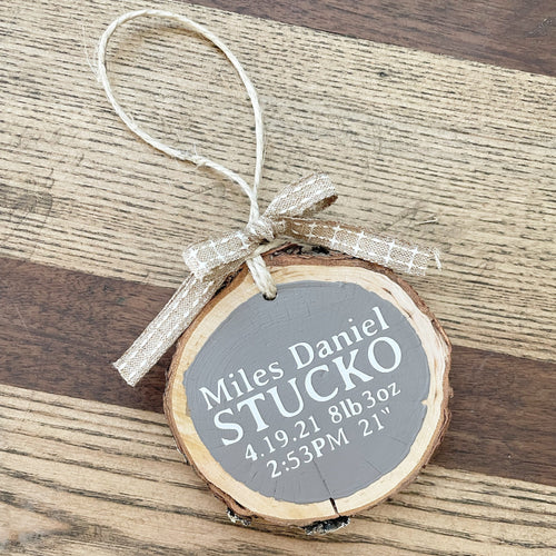 Baby Stat Ornament, Simple Wood Baby Ornament, Baby’s First Christmas Ornament, Custom Personalized Baby Christmas Ornament