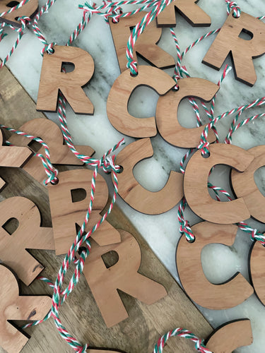 Set of Letter Initial Wood Tags, Personalized Holiday Gift Tags, Christmas 2023
