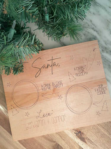 Personalized Santa Cookie and Milk wood platter, Christmas 2023