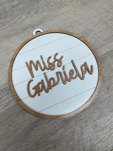 Teacher Shiplap Sign, Therapist Door Hanger, Christmas Gift for Teacher Para Aide, Personalized Custom Wood Round Plaque, Teacher Sign