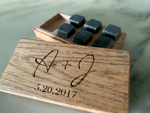 Whiskey Stone Set | Wood Case | Set of 6 | Groomsmen Gift | Anniversary Gift