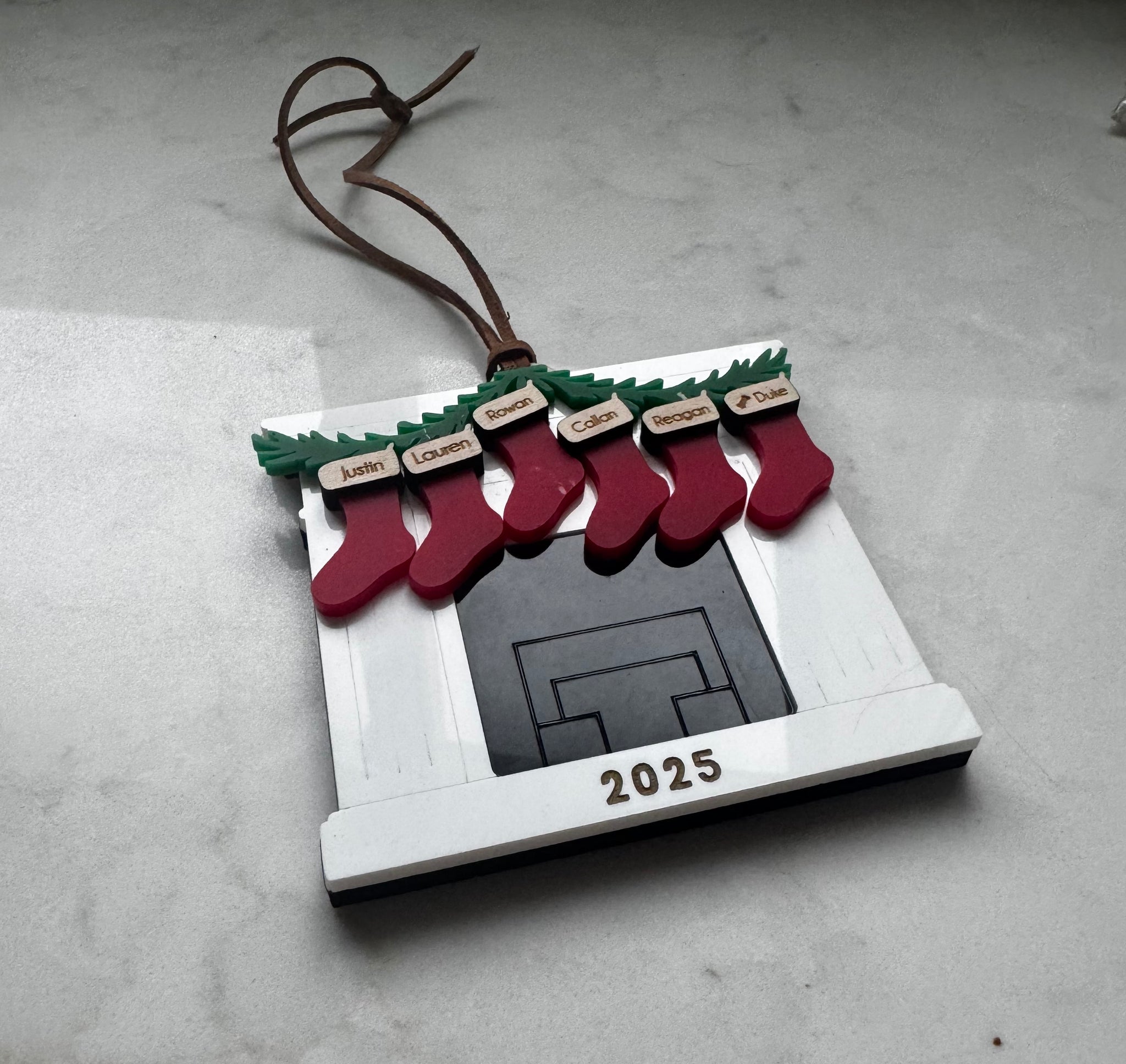 Enter your family’s information in the notes section at checkout. Names will be added left to right in the order you write them.